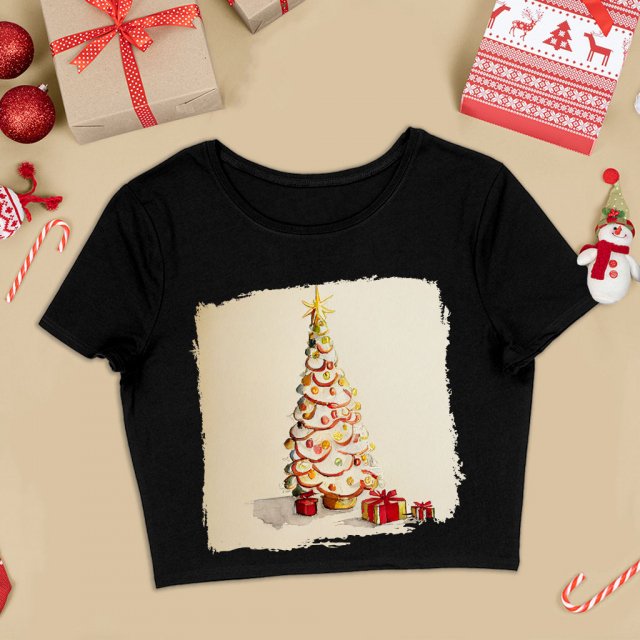 Christmas Tree Art Cropped T-Shirt – Unique Apparel – Christmas Themed Stuff