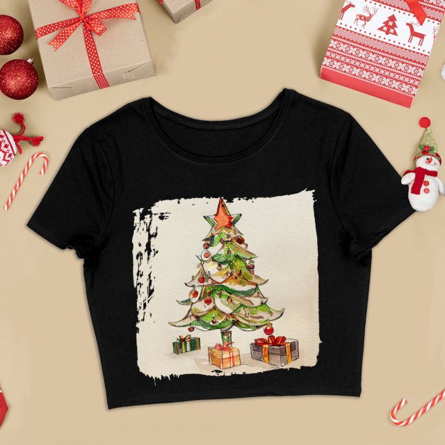 Christmas Tree Design Cropped T-Shirt – Art Lovers Stuff – Christmas Stuff