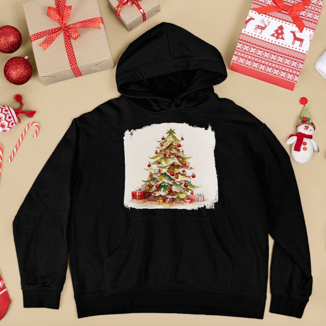 Christmas Tree Painting Hoodie – Christmas Themed Clothing – Cute Apparel