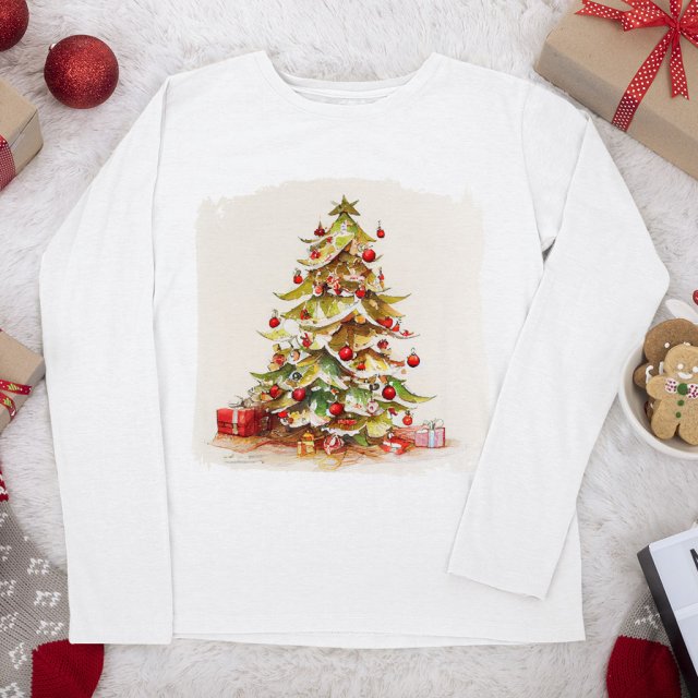 Christmas Tree Painting Long Sleeve T-Shirt – Christmas Themed Clothing – Christmas Clothes for Adults