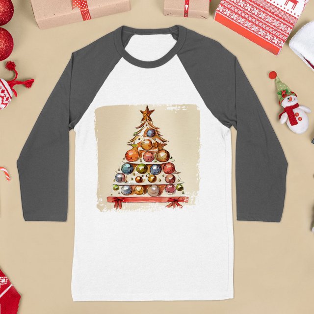 Christmas Tree Watercolor Baseball T-Shirt – Christmas Outfit – Christmas Stuff