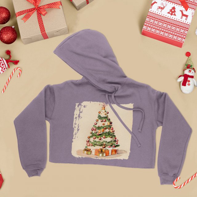 Cute Christmas Tree Women’s Cropped Hoodie – Christmas Clothes for Adults – Art Lovers Stuff